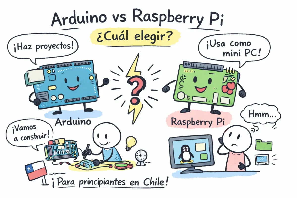 Si estás buscando una comparativa de Arduino vs Raspberry Pi para principiantes en Chile, llegaste al lugar correcto. A muchos les pasa lo mismo: quieren empezar en electrónica, buscan por dónde entrar, y de repente aparecen dos nombres que suenan casi intercambiables. Arduino. Raspberry Pi. ¿No son lo mismo? ¿Cuál compro primero? ¿Por cuál no me voy a arrepentir? Al terminar este artículo, vas a saber exactamente qué plataforma se adapta a lo que quieres construir, qué proyectos iniciales puedes hacer desde la primera semana, y dónde conseguir los materiales en Chile sin esperar semanas desde el extranjero.